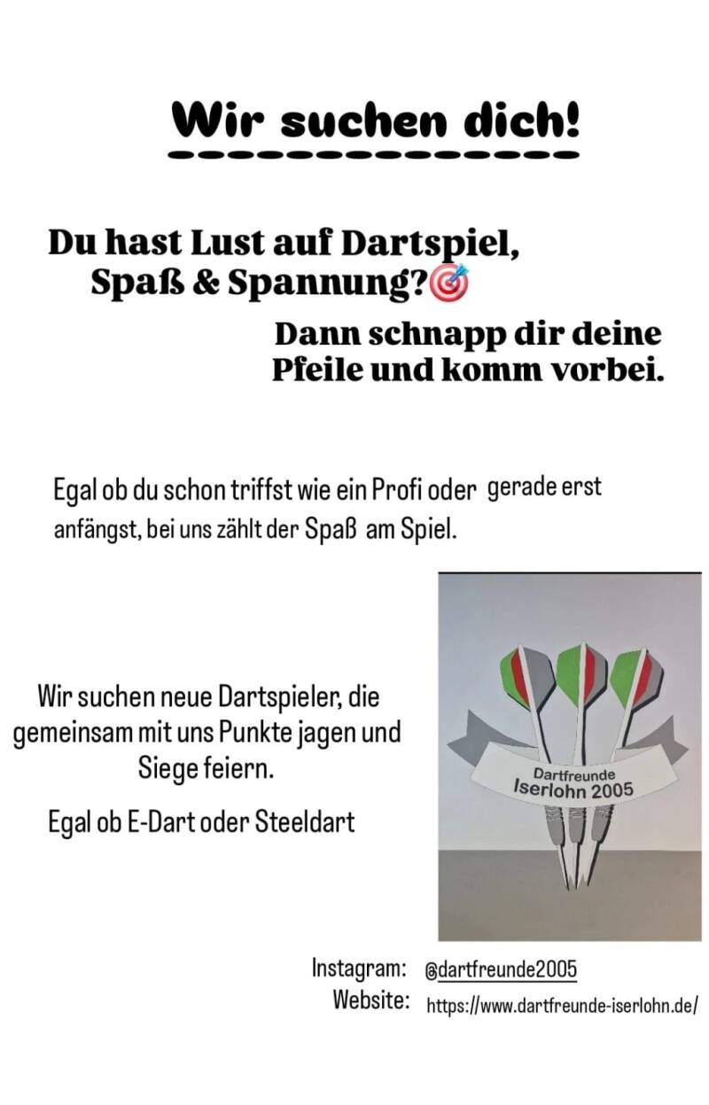 Hier findet Ihr die neuesten Nachrichten und Updates von den Dartfreunde Iserlohn 2005. Bleibt auf dem Laufenden über Turnierergebnisse, bevorstehende Events und alle Neuigkeiten rund um unseren Verein.